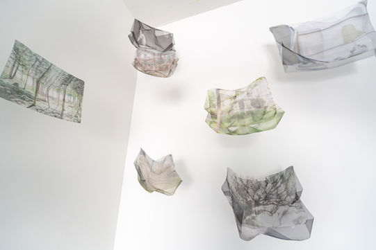 All artwork is printed on silk organza and is installed as an interactive experiential exhibition. This exhibition is a collaborative event and will include dance performances